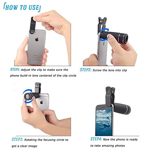 【 10 x telescooplenzen 】: het is geweldig voor handmatige scherpstelling. De focusring maakt een vrije instelling met de hand mogelijk. Je kunt de focus van de afbeelding wijzigen om betere effecten te bereiken en verwijderde motieven te zoomen en het beeld met hoge resolutie zelfs van ver te krijgen.